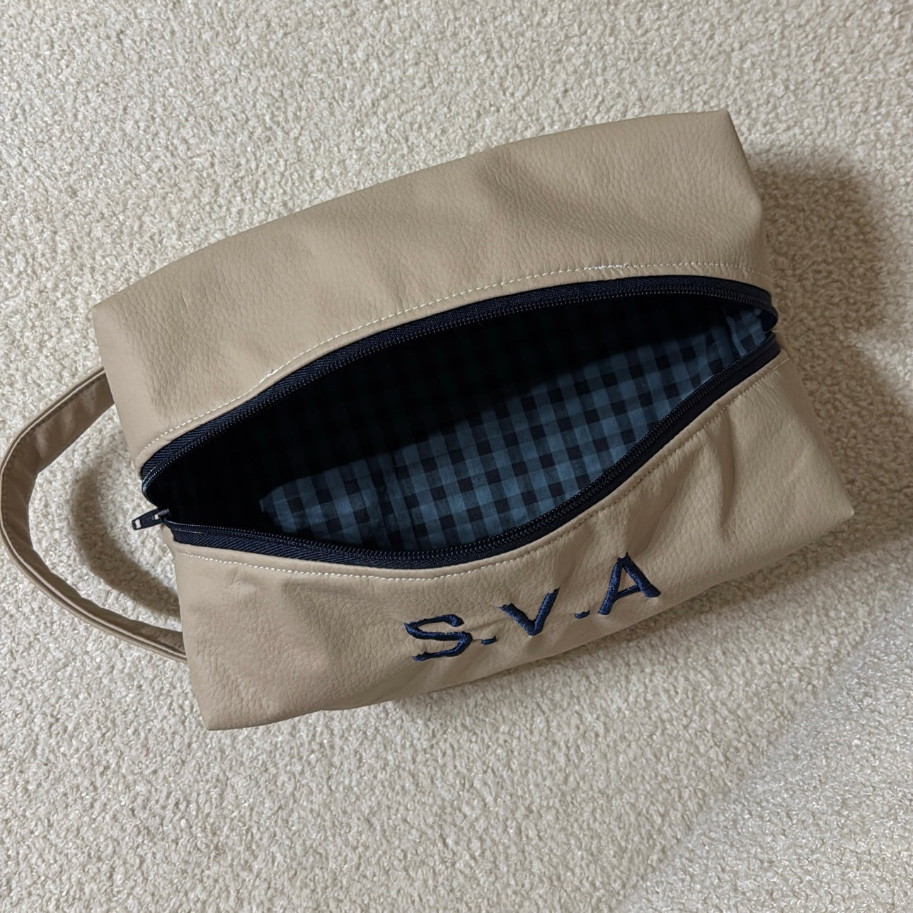 Neceser ideal para nuestros chicos. En polipiel beige fácil de limpiar e impermeable. El asa lo hace súper cómodo para moverlo. No ocupa nada de espacio para viajar.