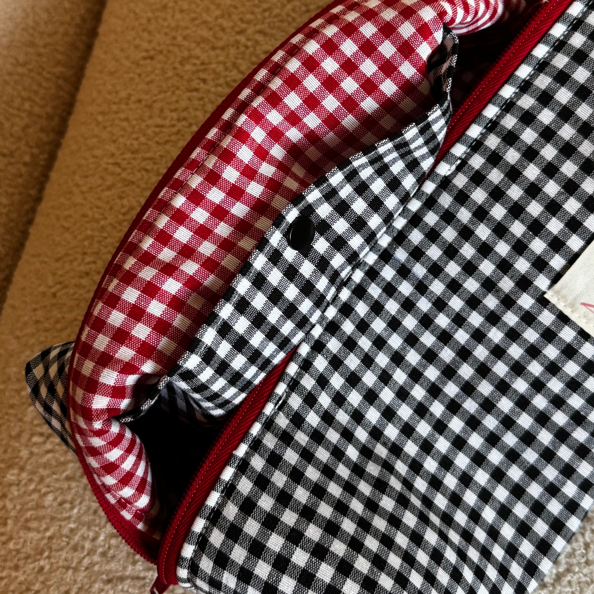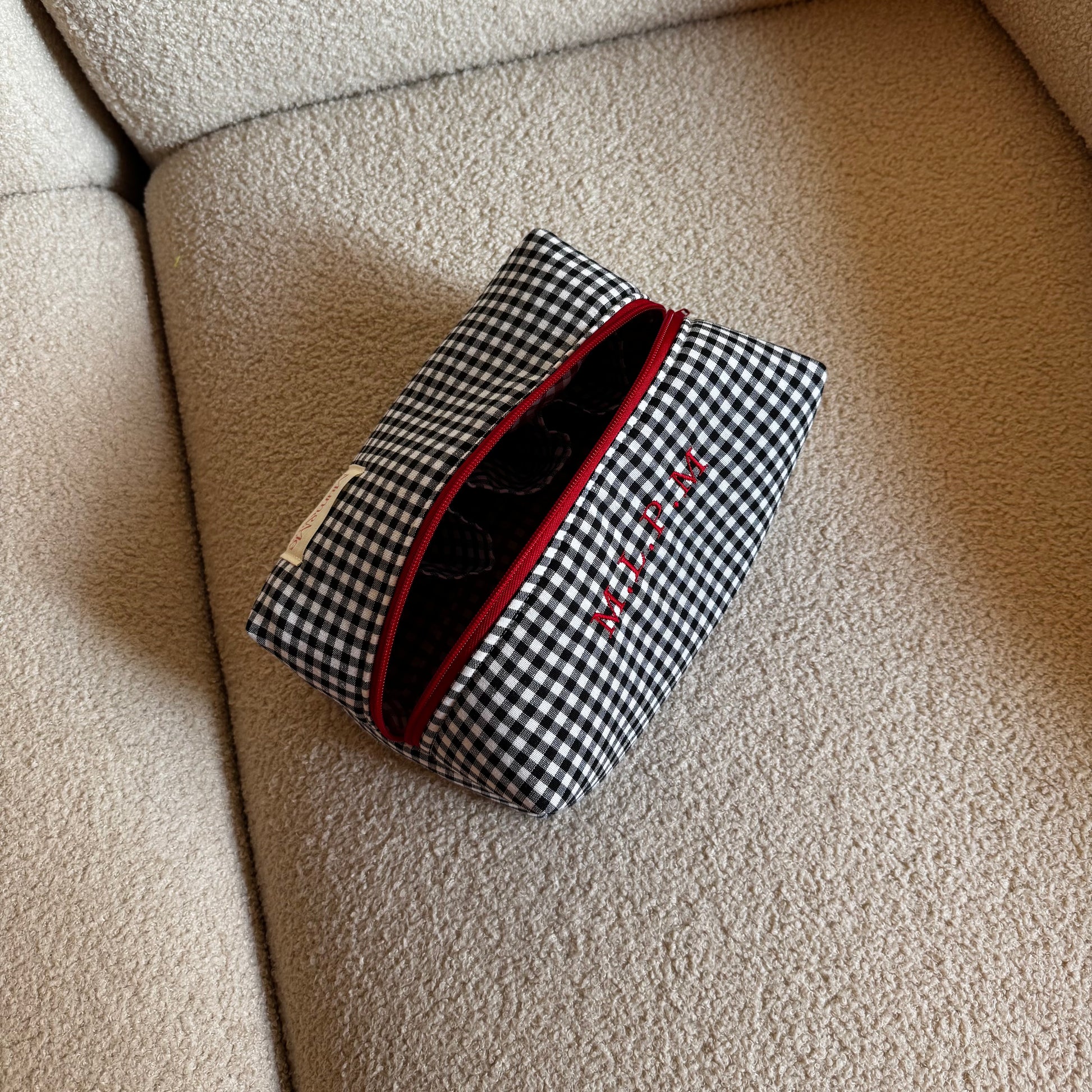 Nuestro neceser clásico Vichy de viaje ahora en una versión mejorada. Con departamentos para organizar tus botes y bolsillo interior con clip.